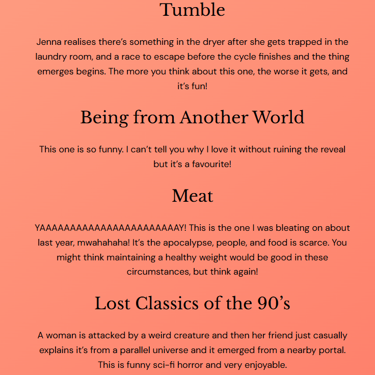 “I Hope This Finds You Well” by Eric LaRocca feels like a wonderful homage to refined horror tales of the 19th century, but then the horror keeps intensifying, and there’s that punch ending. Love this story.